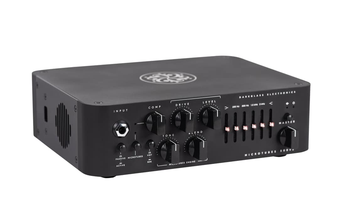 The Microtubes 500v2 is a 500W amplifier equipped with an all-analog preamplifier, custom-designed Darkglass high-efficiency class D Module, an ultra-quiet graphic equalizer, and a digital impulse-response cabinet emulator for DI outputs or headphones.